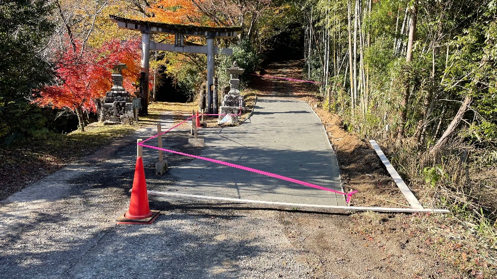 裏参道を利用しない方には関係ない道路ですが、氏子さんや足腰の不自由な参拝者には重要な道路です。夜神楽当日には通れますのでよろしくお願いします。