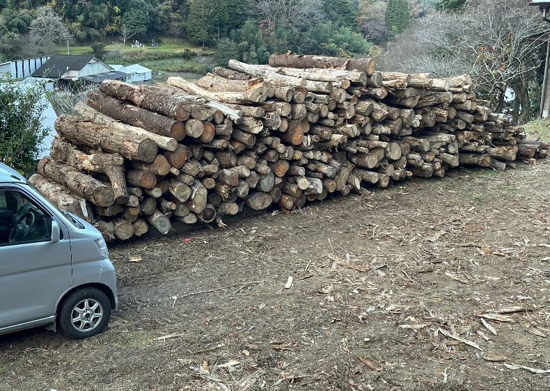 あれから半年以上経ち、暇をみてその山林に行くと大量の丸太が積み上げられていたのです!おそらく10トントラック3台分位でしょうか!?